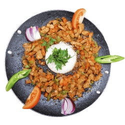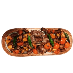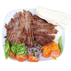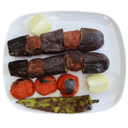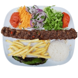 Doner, 3 ailes de poules, 1 brochettes kebab avec tomate, côtelette, 2 agneau