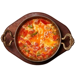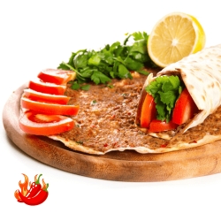 Sauce tomate ou Crème fraîche, mozzarella, saucisson turc, oignons, oeuf