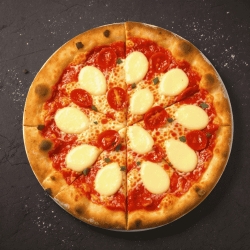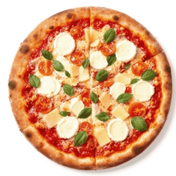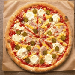 Sauce tomate ou Crème fraîche, mozzarella, champignons, poivrons, maîs, oignons, olives